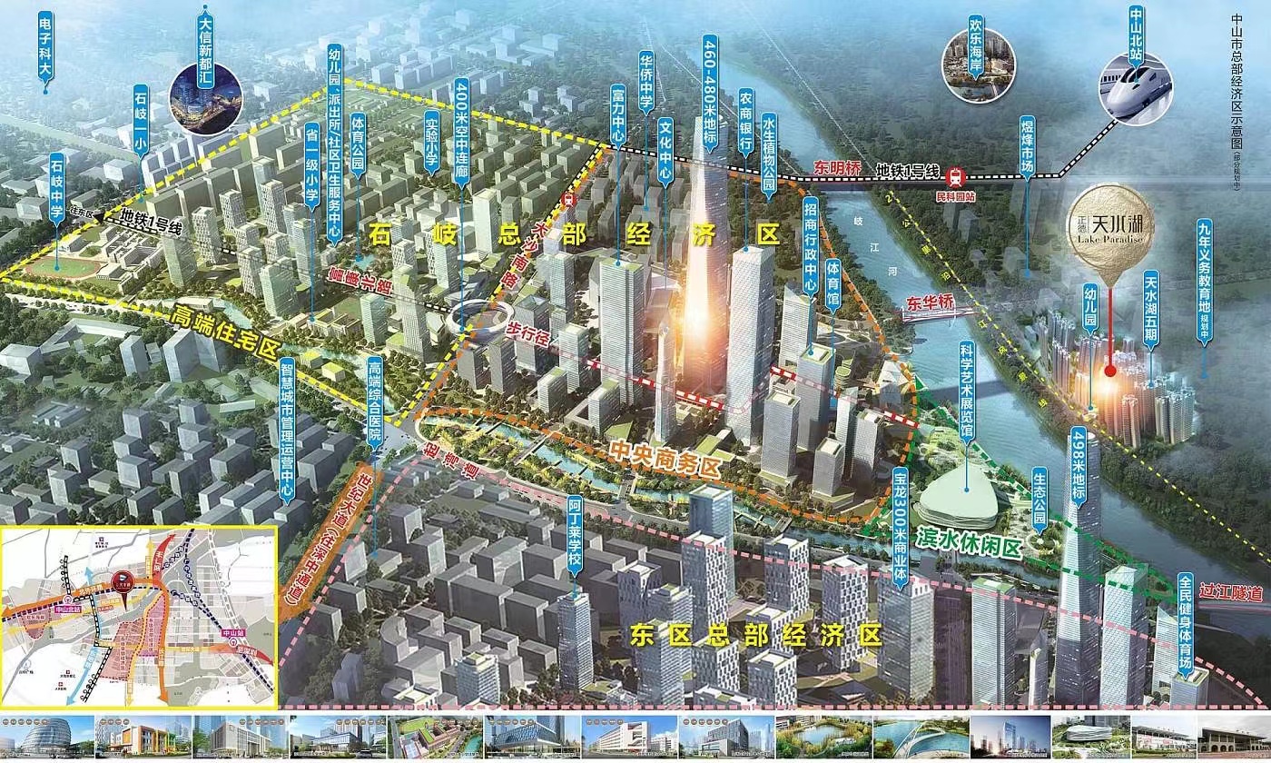 项目位于号港澳大湾区交通枢纽城市中山市核心的石坡区,与蚑江新城的校心、总部经济区一桥之隔。坐拥双城轨交通配套,跨市出行方便快捷。5-10 分钟到达中山北站及中山站两大高铁站,此邻多条高速(广中江高速、广珠西线)、快逊路《世纪大道、长江路、起湾道),快速接驳湾区各城市路网,未来40 分钟车程直抵广深,一小时畅达大湾区任一城市。